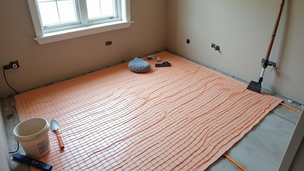 First, gather your gear. You’ll need an electric radiant floor heating mat (check for 120-volt, 12 watts per sq. ft. models), a thermostat, and thin-set mortar. Measure your bathroom—say, 5×8 feet—and buy a mat to fit.