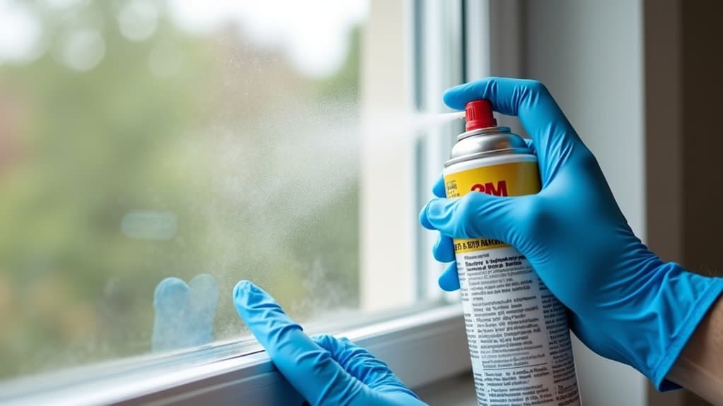 Alright, with that window sparkling like a diamond, it’s time to get sticky with the adhesive spray! I’ve botched this before, so trust me, you’ve gotta be careful. Let’s do this right!
