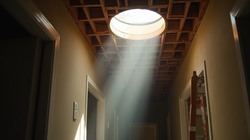 First, scout the spot. Pick a hallway ceiling area, ideally 3×3 feet, away from pipes or wires. Trust me, I learned the hard way once!