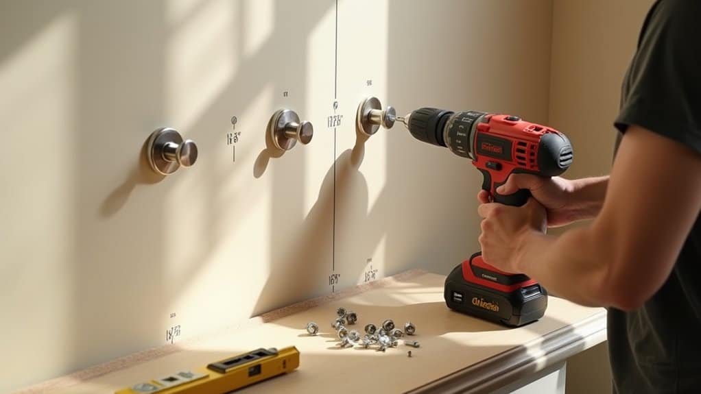 Start by picking sturdy hooks—think heavy-duty, holding 5-10 lbs each. Measure 5 feet from the floor (eye level!), marking spots 12 inches apart with a pencil. Grab a drill, 1/8-inch bit, and wall anchors if you’ve got drywall—don’t skip this, or oops, holes everywhere!