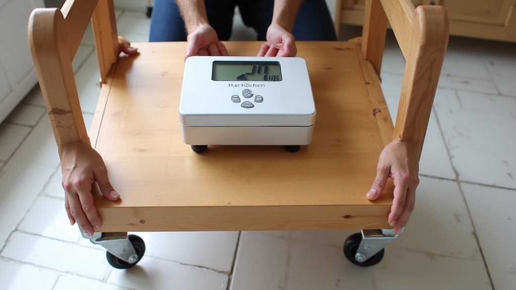 Before we roll this kitchen cart into action, let’s make certain it’s steady as a rock! I’ve had carts tip over mid-dinner prep—total chaos! So, trust me, this step’s essential.