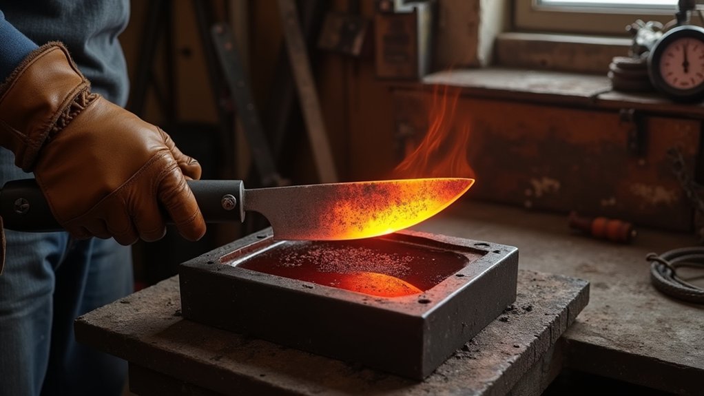 Then, quench it fast in oil (I use canola, cheap and works!). Watch that sizzle—it’s hardening!