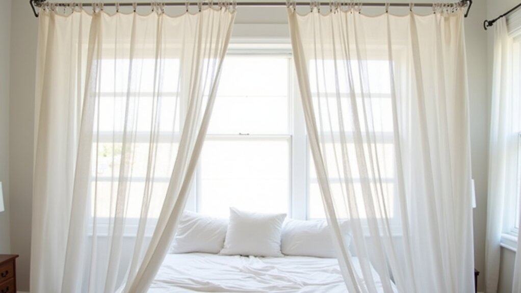 Start by grabbing sheer curtain panels—four 84-inch ones from Walmart work great. Hang them from ceiling hooks around your bed, spacing hooks 2 feet apart for a dreamy drape. Use a drill (careful, don’t hit wires like I did once—oops!).