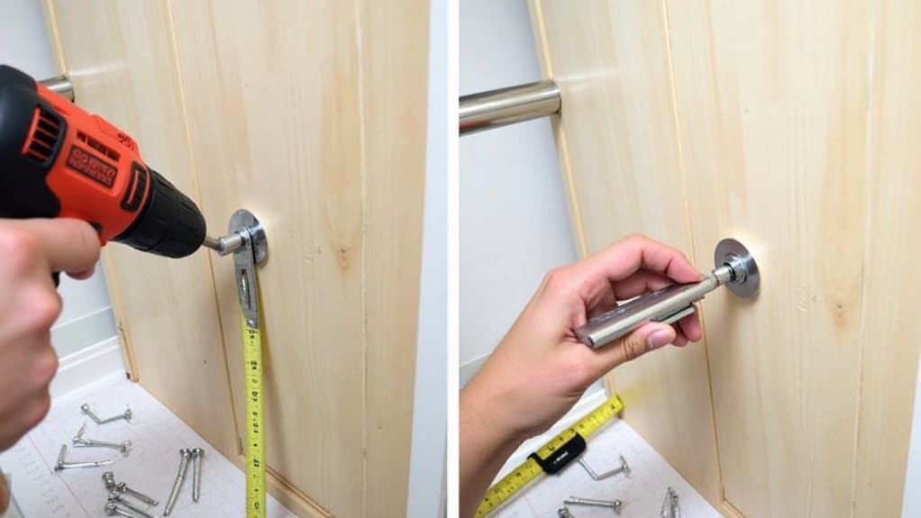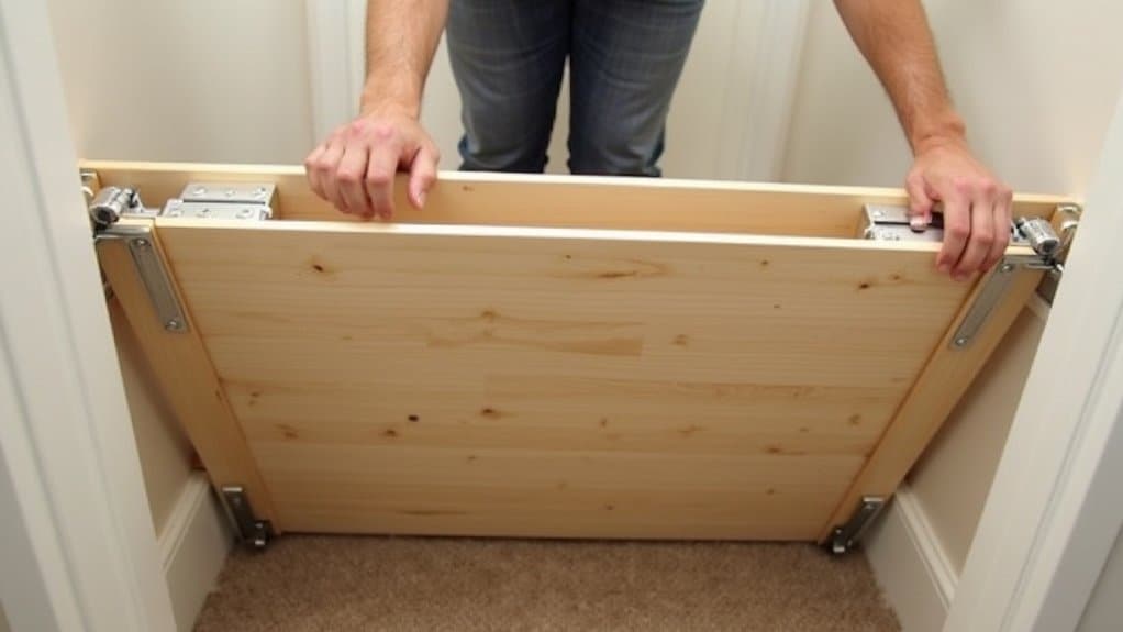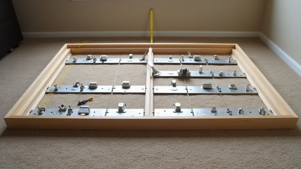 Start by grabbing two heavy-duty locking latches—think 3-inch steel ones from your local hardware store. Position them on the bed frame’s sides, about 6 inches from the top. Mark the spots!