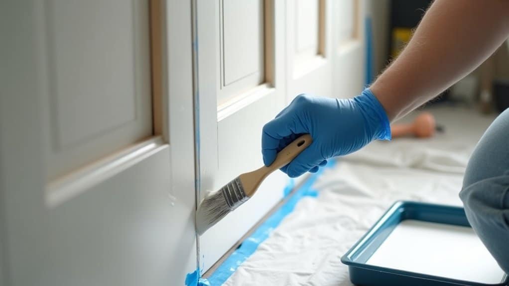 First, prep the area. Grab painter’s tape, a drop cloth, and some sandpaper (220-grit works great). Lightly sand the surfaces for better paint grip—trust me, I skipped this once and regretted it!