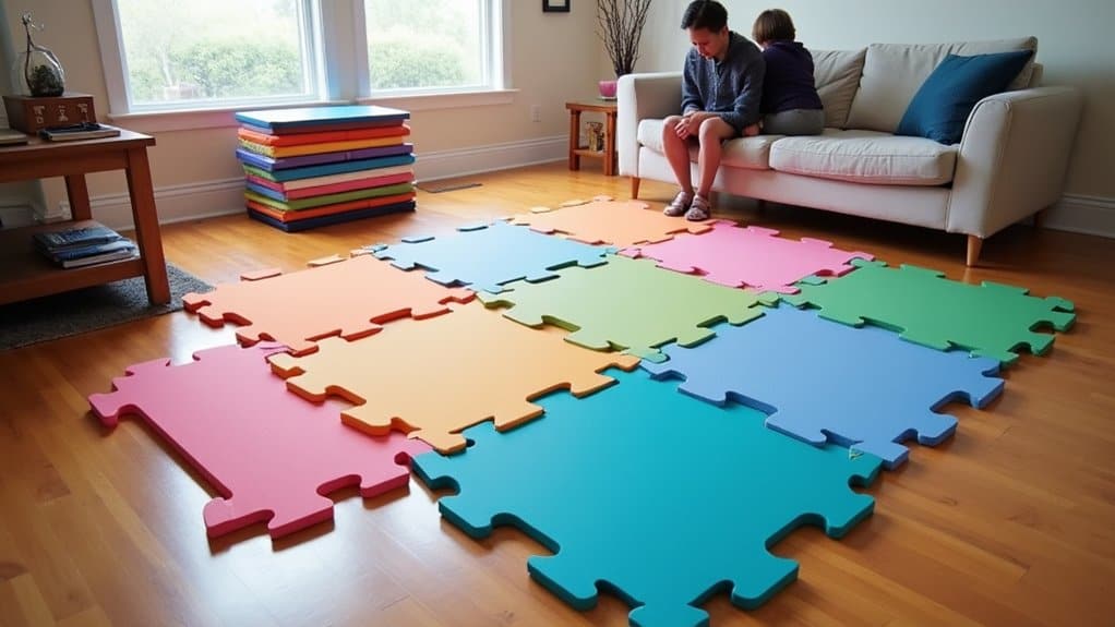 Next, pick safe mats! Go for non-toxic, EVA foam ones with interlocking edges. Lay them down, puzzle-style, ensuring no gaps. Done! Your kiddos now have a cushy, safe spot—yay!