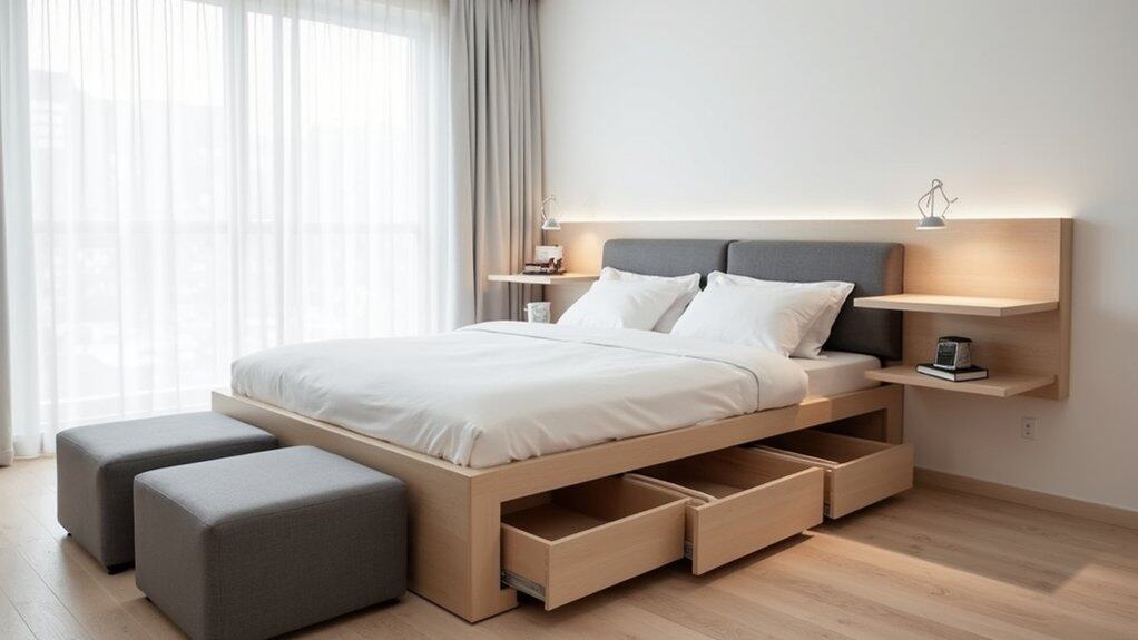 While mirrors can work wonders, let’s explore another awesome trick to maximize your small bedroom—opting for multifunctional furniture! Man, I’ve struggled with tiny spaces, and this saved me!