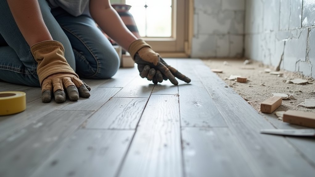 Start by ripping out old flooring. Use a pry bar—careful, don’t stub your toe like I did! Measure your space (mine’s 8×10 feet) for accurate cuts.