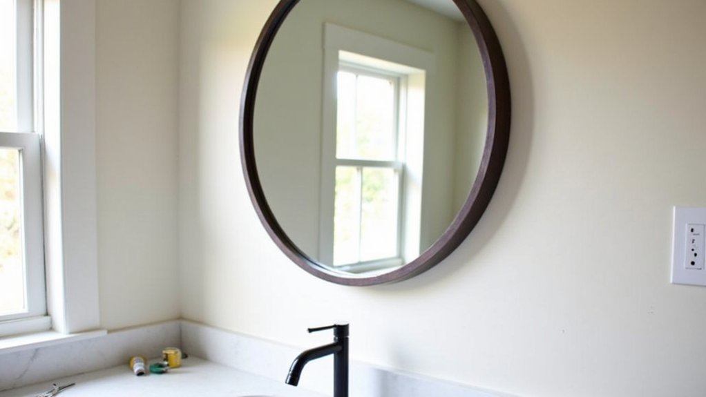 Start with measuring your space—grab a tape measure and note the width and height (say, 24×36 inches). Pick a framed mirror from stores like Target; I love their $30 round ones!