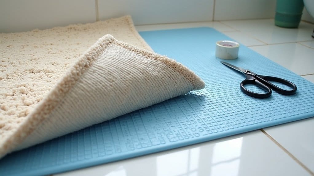 Hey there, let’s get started on making your bathroom rug slip-proof with a few easy steps! I’m pumped to walk you through preparing the rug surface, applying adhesive coating, attaching grip tape, securing rubber backing, and testing the adhesive strength—trust me, I’ve had a few hilarious slips myself! Stick with me, and we’ll keep those rugs in place together!