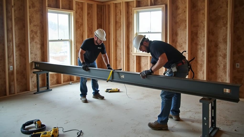 First, grab a steel I-beam—about 10 feet long for most kitchens—and rent a couple of adjustable steel posts. Measure twice from wall to wall (mine was off by an inch once—ugh!). Secure posts every 3 feet, then hoist that beam up. Bolt it tight!
