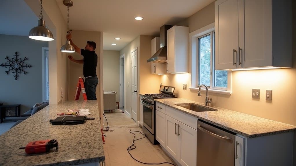 First, assess your needs. Grab recessed LED lights (4-inch diameter, 800 lumens) for general brightness; install six evenly across a 10×4-foot ceiling. Then, add under-cabinet LED strips (12-inch, 300 lumens) for task lighting—plug-in ones are easiest!