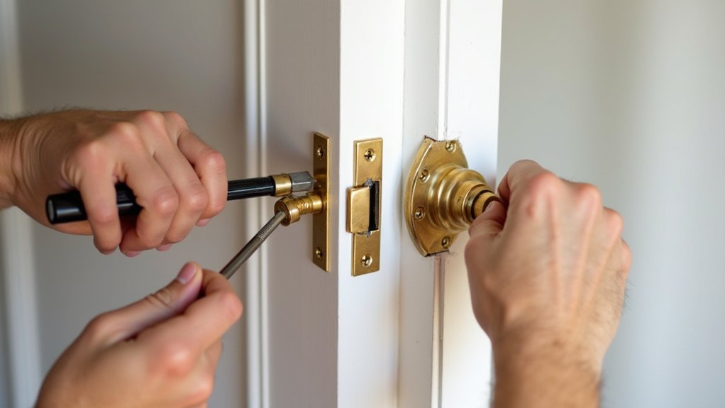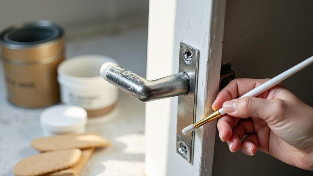 After painting your homemade lock, it’s essential to guarantee it fits and functions perfectly in its designated spot. Misalignment can ruin your hard work, so let’s get it right.