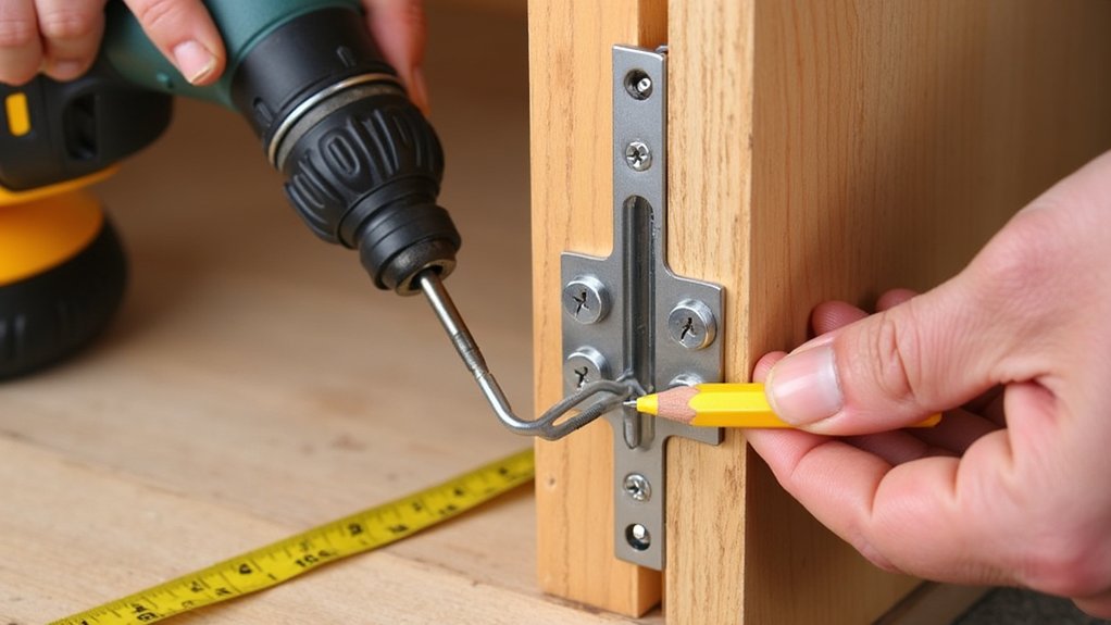 - Mark Positions: Measure 3 inches from the door edge, marking two spots for screws.