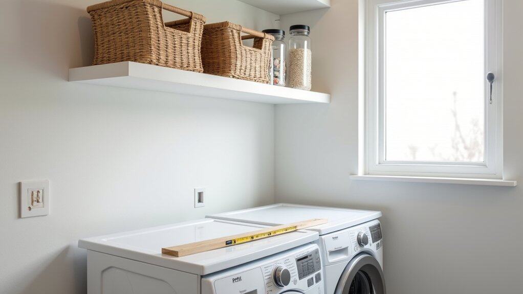 Once the shelves are installed, organize items by frequency of use, placing everyday essentials like detergent and dryer sheets on lower, easily accessible shelves. Reserve higher shelves for less frequently used items, such as bulk supplies or seasonal cleaning products, to maintain a clutter-free workspace. Label containers or baskets on the shelves to quickly identify contents, enhancing efficiency in your laundry routine.