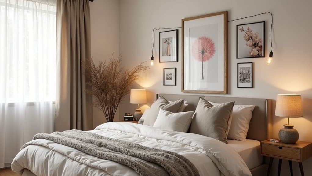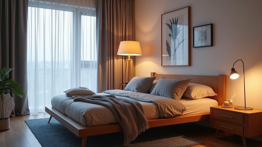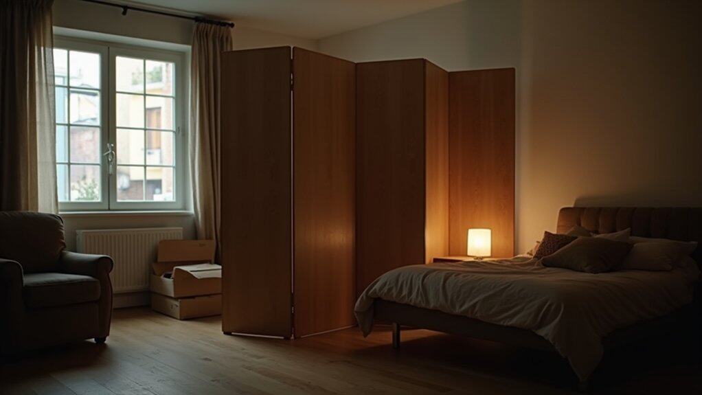 While transforming your living room into a bedroom, don’t overlook the magic of privacy screens—they’re a game-changer! I’ve tripped over cords trying to section off spaces, so trust me, screens save sanity! They’re like walls, but portable.