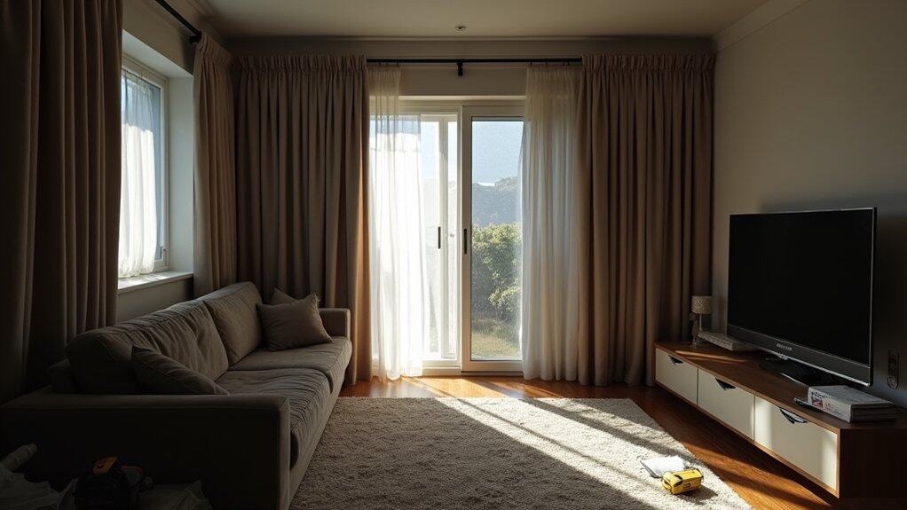 First, grab some heavy-duty acoustic curtains (like NICETOWN, 84 inches long). Hang ‘em tight over windows to block noise. Next, seal gaps around doors with weatherstripping tape—trust me, I skipped this once and regretted it!