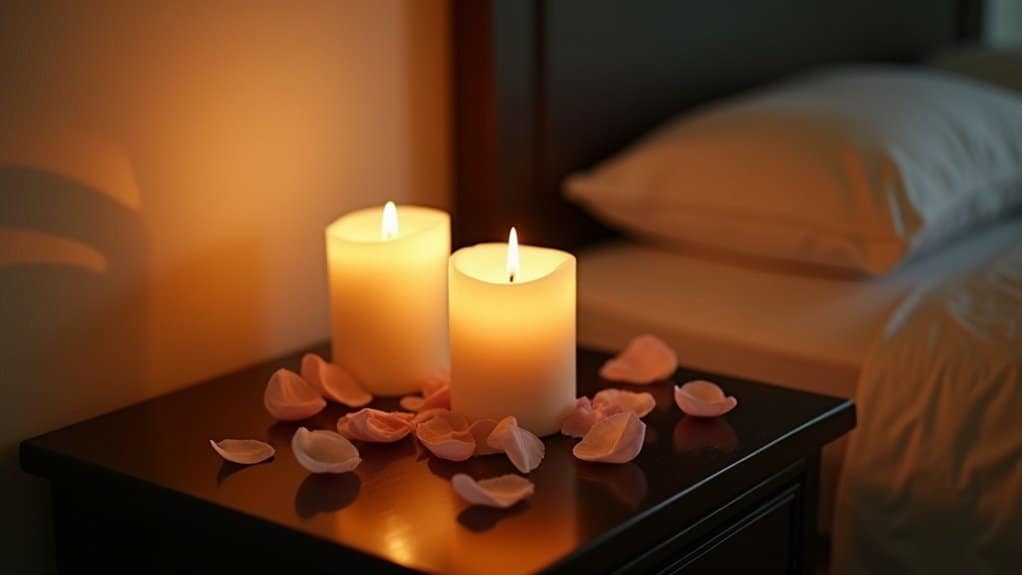 First, dim the lights. Use a 40-watt soft white bulb in a bedside lamp for that warm glow. Then, layer textures—grab a fluffy 50×60-inch throw blanket from Target and drape it over your bed. Finally, light unscented pillar candles (3-inch diameter, 6-inch tall) on a tray for safety. Wow, it’s instantly snuggly and romantic!