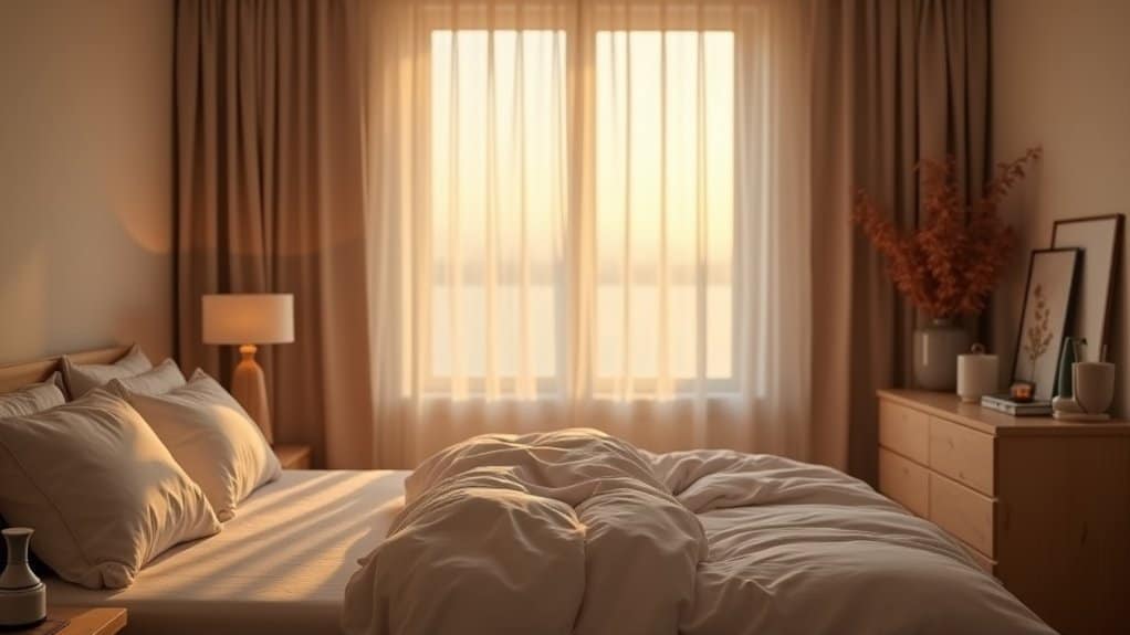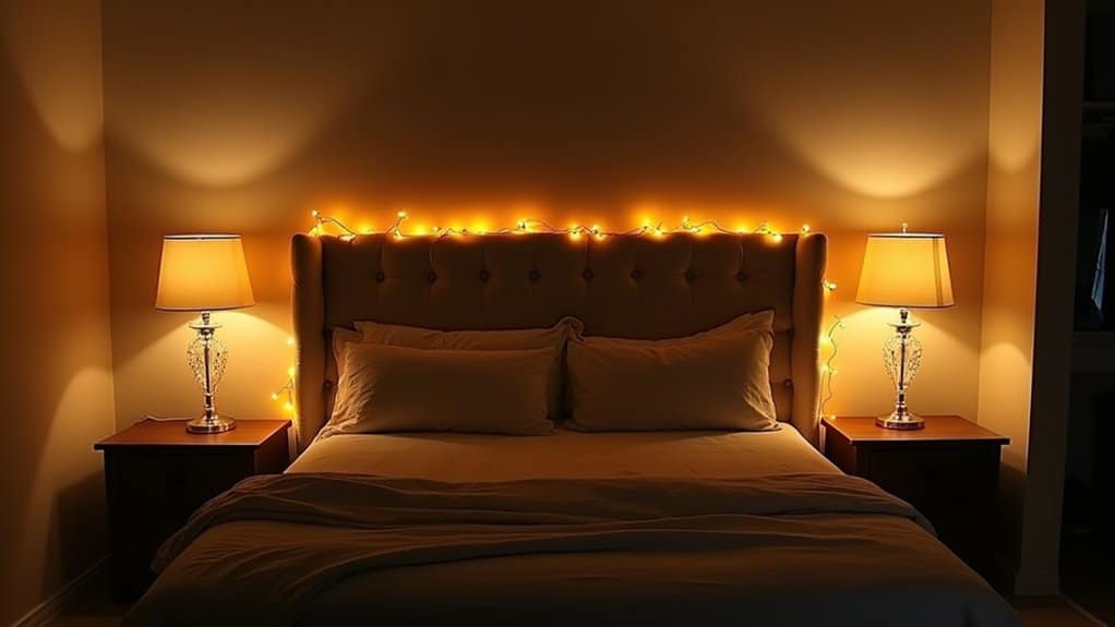As we plunge into transforming your bedroom, let’s tackle the dreamy task of adding soft lighting—it’s a game-changer! I’ve botched this before, trust me, with bulbs too bright. Yikes!
