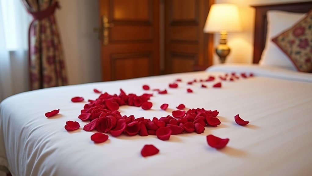 Now that your silky bedsheets are smoothed out, let’s sprinkle some magic with rose petals to turn your bedroom into a love nest! I’m so excited to see his face—let’s do this right!