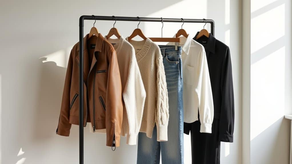 Next, evaluate your current wardrobe to pinpoint these standout items and consider investing in high-quality versions if needed. Limit yourself to a few signature pieces to avoid clutter, prioritizing timeless designs over fleeting trends. By curating these items thoughtfully, you create a wardrobe that not only looks cohesive but also tells your unique style story.