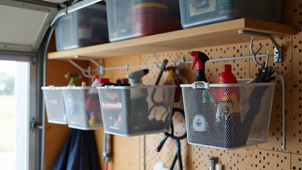 Under-shelf baskets are an excellent way to maximize vertical space in a small garage by utilizing the often-overlooked area beneath shelves. Start by selecting sturdy, appropriately sized baskets that can slide or hook onto the underside of your garage shelves, ensuring they are secure and can hold the weight of the items you plan to store. These baskets are perfect for storing smaller tools, cleaning supplies, or seasonal items that you need to access regularly without taking up valuable shelf or floor space.