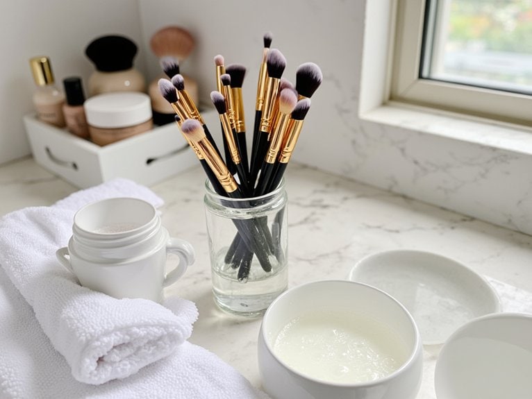Moving from the focus on makeup hygiene, it’s time to explore the tools needed for effective cleaning routines. Having the right cleaning supplies guarantees makeup tools stay in top shape without breaking the bank.