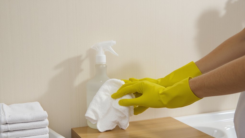 - Tools: soft cloths, non-abrasive sponges, spray bottle, rubber gloves, protective eyewear