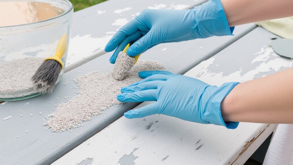 - Apply the vinegar-sand paste generously to painted surfaces using a sturdy brush or sponge