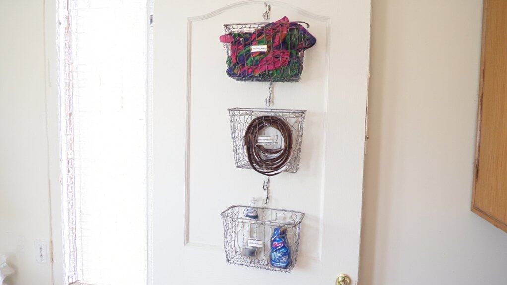 Install the baskets at varying heights to accommodate different items, such as scarves, belts, or cleaning supplies, and use labels to quickly identify contents. Group similar items together to maintain order and prevent clutter from piling up over time. Regularly reassess the contents to remove unused items and keep the baskets functional and organized.