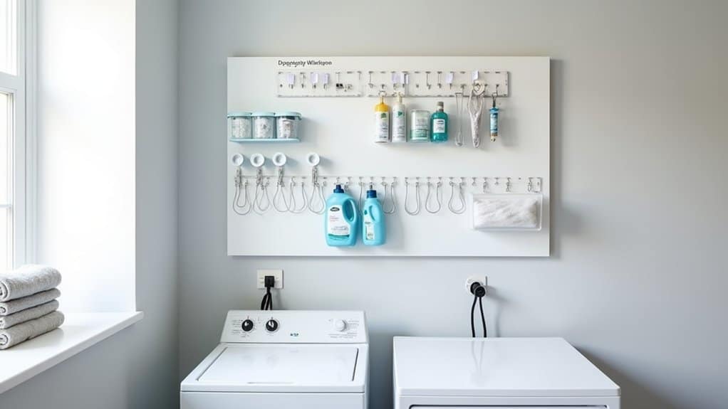 To maximize the pegboard’sPotential, consider grouping items by function or frequency of use for a streamlined workflow. For instance, place stain removers and measuring cups near the top for quick access during laundry prep, while lesser-used items like fabric softener can go lower or in a container. Add labels to shelves or hooks for easy identification, especially if multiple family members use the space, ensuring everything has a designated spot and clutter is minimized.