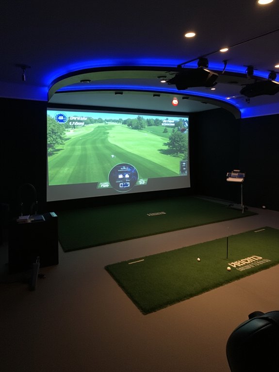 An in-home golf simulator transforms any suitable indoor space into a private golf facility for year-round practice and play. The setup requires a room with at least 10-foot ceilings to accommodate full swings, along with a high-quality hitting surface, projection screen, and launch monitor system.