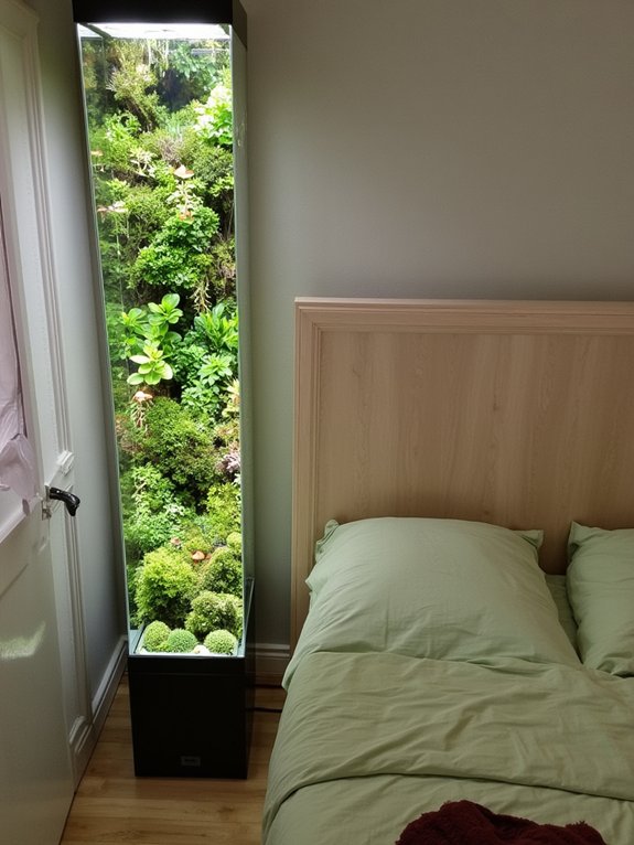 The book nook should feature natural textures and earthy colors that complement your bedroom’s woodland theme. This cozy reading spot serves as a perfect sanctuary for escaping into your favorite books while surrounded by elements that evoke the peaceful atmosphere of a forest grove.