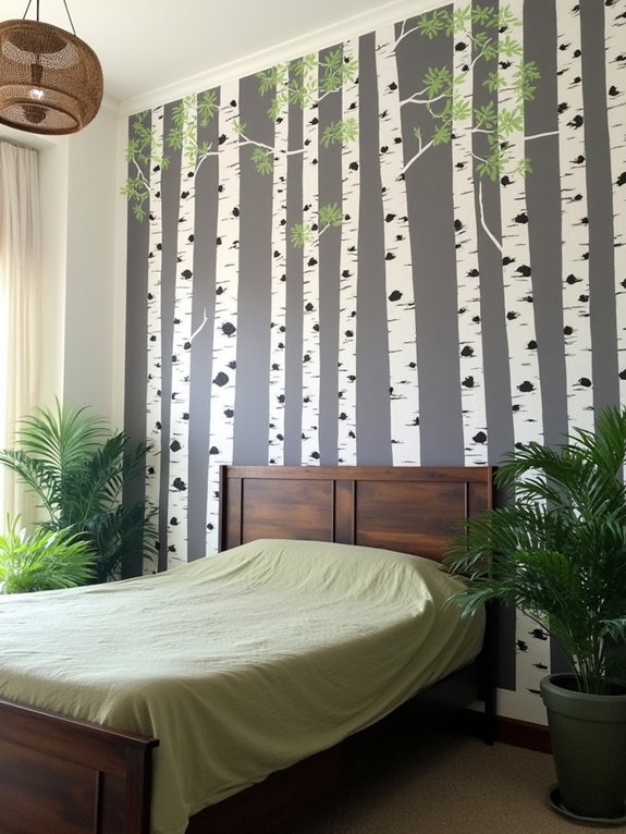 Birch bark wall decals offer a simple way to bring the tranquil beauty of a forest into your bedroom. These peel-and-stick designs replicate the distinctive patterns and textures of birch trees, creating a natural focal point without permanent changes to your walls.