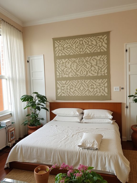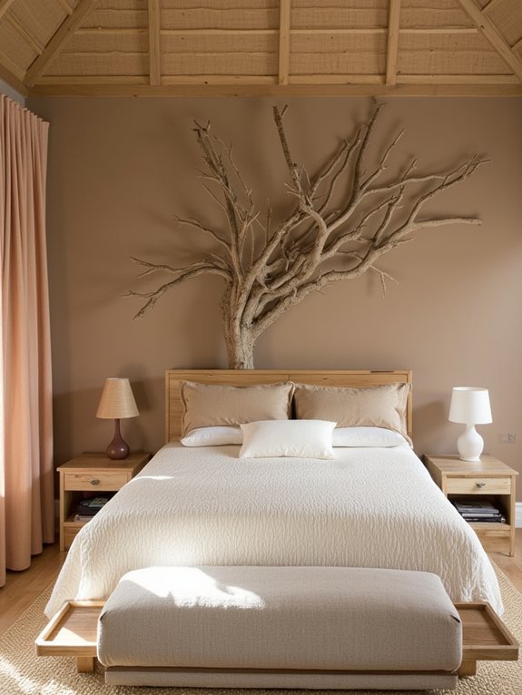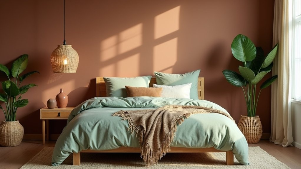 Rich earth tones, handwoven textiles, and botanical accents work together to transform your bedroom into a peaceful retreat that feels connected to nature.