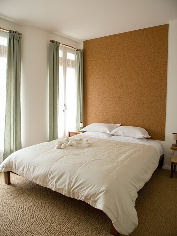 Cork accent wall panels offer a sophisticated way to enhance bedroom walls while providing natural insulation. These eco-friendly panels create visual impact and serve practical purposes, combining aesthetics with functionality for sleeping spaces.