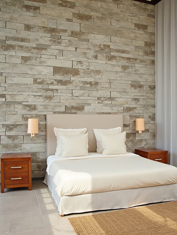 Natural stone accent walls create striking focal points in bedrooms by incorporating raw, organic textures and visual depth. The stone’s varied patterns and earthy tones forge an immediate connection to nature while providing exceptional durability and timeless aesthetic value.