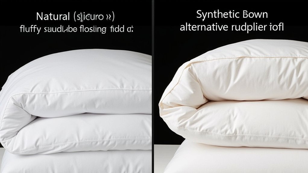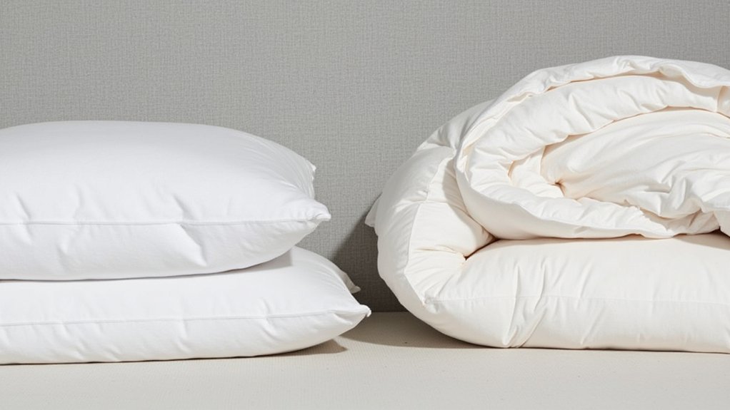 While both feather down and down alternative promise cozy comfort, they’re fundamentally different materials that affect your sleeping experience. When you’re examining feather characteristics, you’ll notice natural down clusters come from waterfowl like geese or ducks, creating lightweight, breathable insulation that traps warm air.
