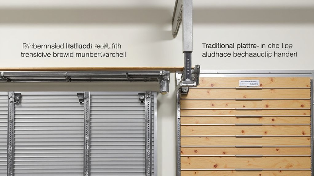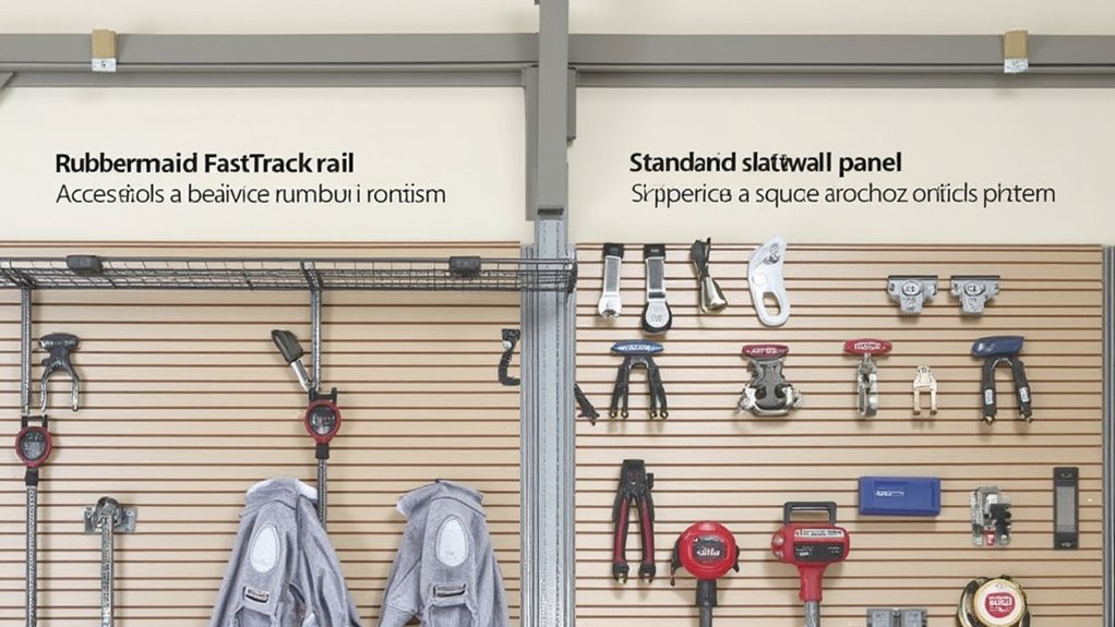 When you’re organizing your garage or storage space, you’ll quickly discover that Rubbermaid FastTrack and Slatwall represent two distinct mounting systems with vital differences. FastTrack’s horizontal rail design requires specific mounting points every 16 inches, while Slatwall’s continuous groove pattern allows for more flexible placement. Storage expert Tom Williams notes, “These systems weren’t designed to work together, but that hasn’t stopped DIY enthusiasts from seeking creative solutions.” Let’s explore why these systems don’t naturally integrate and what options you have.