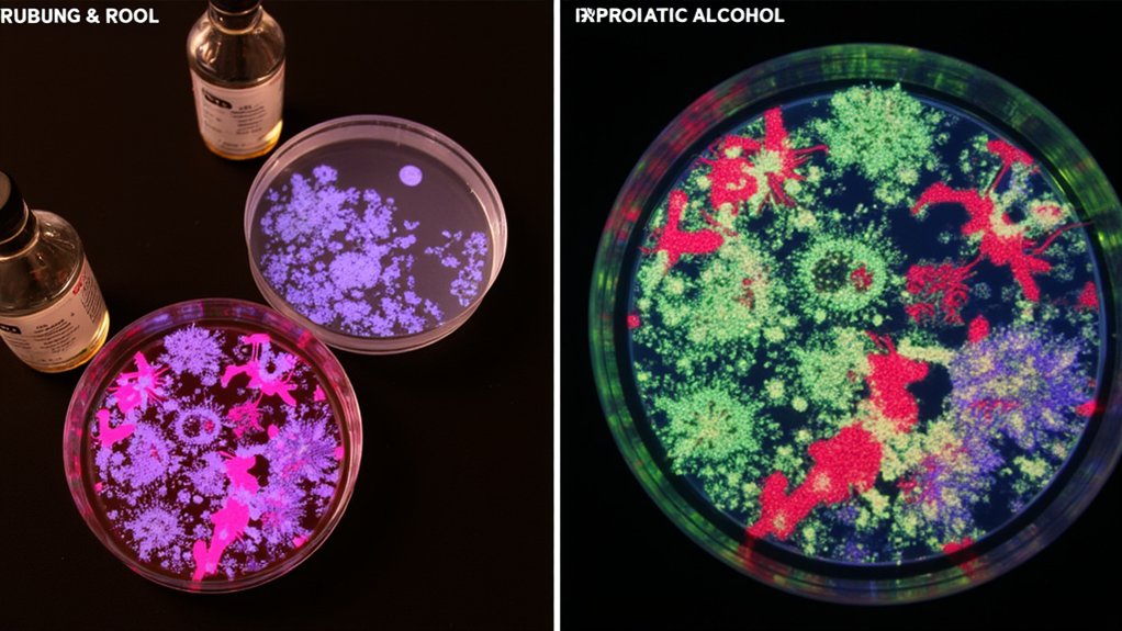 Dr. Sarah Chen, infectious disease specialist, explains: “While alcohol disrupts bacterial cell membranes effectively, some pathogens have developed bacterial resistance mechanisms.” You’ll need additional disinfection methods to prevent germ transmission in high-risk areas. For thorough protection, combine alcohol-based cleaning with other EPA-approved disinfectants, especially in areas where spore-forming bacteria or resistant pathogens may be present.