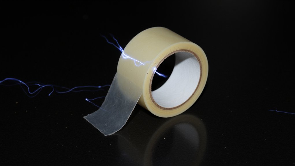 You’d be shocked to learn that the clear, innocent-looking Scotch tape on your desk has a hidden electrical personality. While it’s not conductive in its normal state, this everyday adhesive can actually conduct electricity under specific conditions. Scientists have discovered that stretching the tape changes its electrical properties dramatically, and temperature plays a surprising role too. Let’s explore how this household staple might be more than just a way to stick things together.