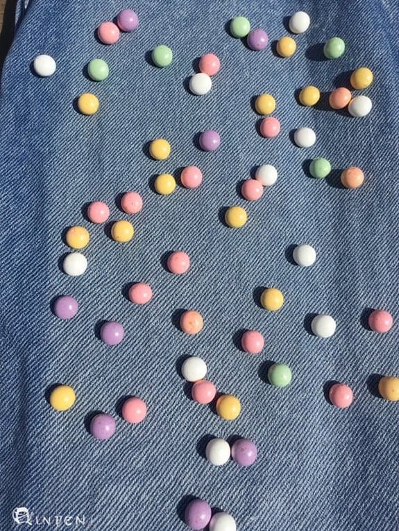 The execution is straightforward – arrange the candy rolls across the jeans at regular intervals and allow sufficient drying time. When paired with a basic t-shirt, the candy-adorned pants become the focal point, delivering a visual pun that’s sure to spark conversation at any costume party.