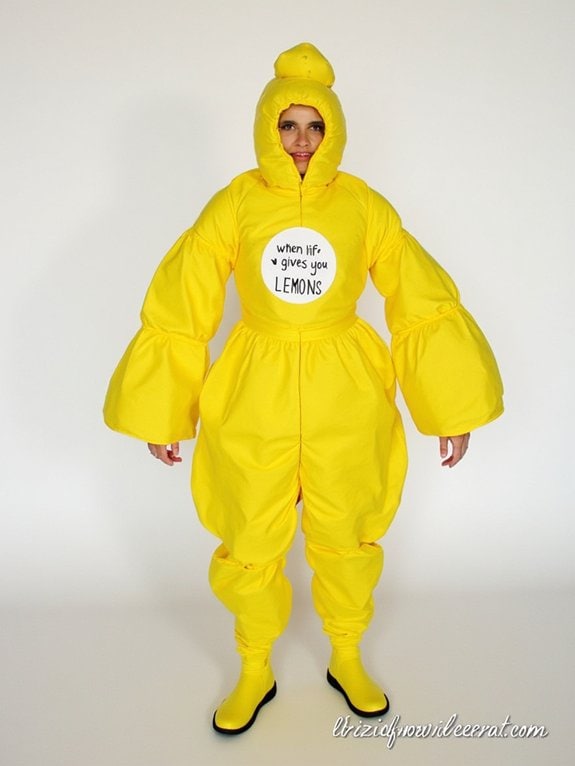 A playful twist on the saying “when life gives you lemons,” this costume consists of a yellow base outfit decorated with artificial lemons pinned throughout. The defining feature is a name badge that simply reads “LIFE,” making you the physical embodiment of the phrase’s giver of lemons.