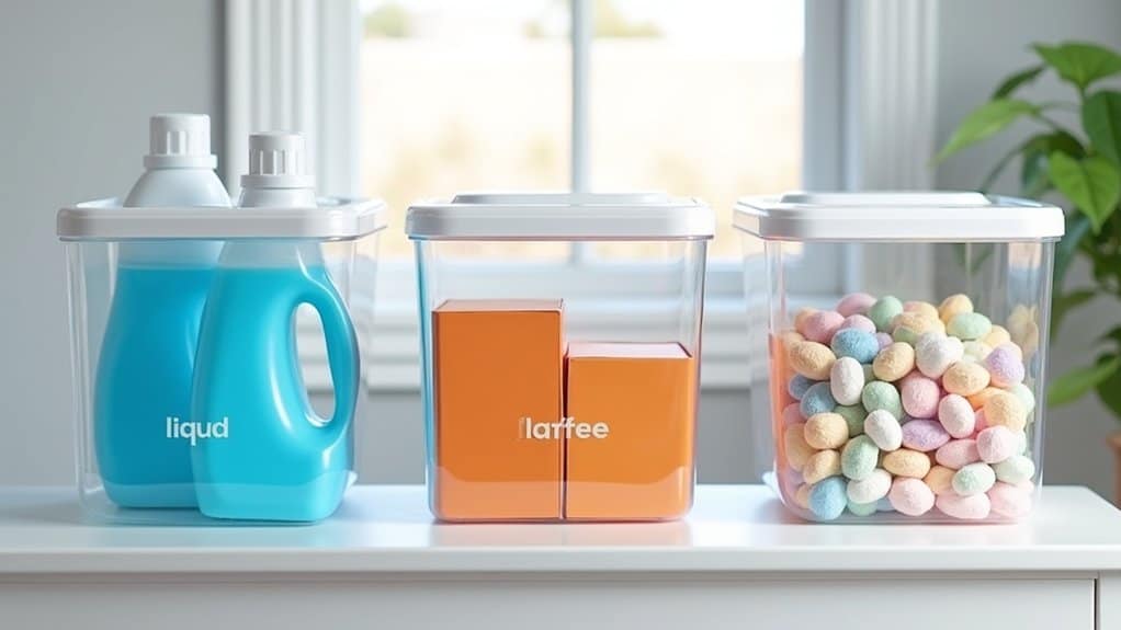 While laundry can feel like a chaotic mess, your counter doesn’t have to be! Hey, I’m thrilled to share some tidying tips that transformed my own space. Back in the day, my detergent bottles were a jumbled disaster—until I got creative. Start by categorizing pods and liquids into neat trays. Want to know the secret to floating shelves that save space? Stick around for game-changing ideas!
