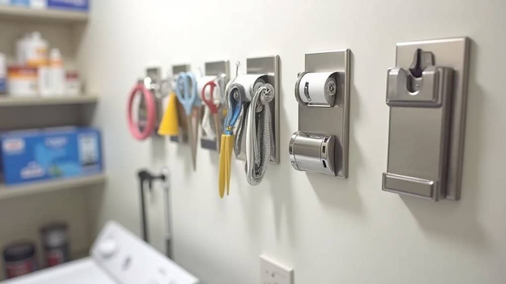 Start by evaluating the tools and supplies you use most frequently to determine what should be stored on the magnetic strip. Opt for lightweight items or containers with magnetic backs so they stay firmly in place without overloading the strip. This method not only declutters your laundry space but also adds a modern, organized touch to the room.