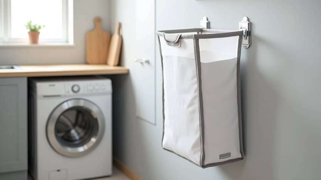 Position the hamper near the area where clothes are most often removed, like near a bedroom or bathroom door, to streamline the process of collecting laundry. If space allows, consider installing multiple hampers side by side to sort clothes by color or type, such as whites, darks, and delicates. This setup not only maximizes vertical space but also keeps your laundry organized before wash day, minimizing clutter on the floor.