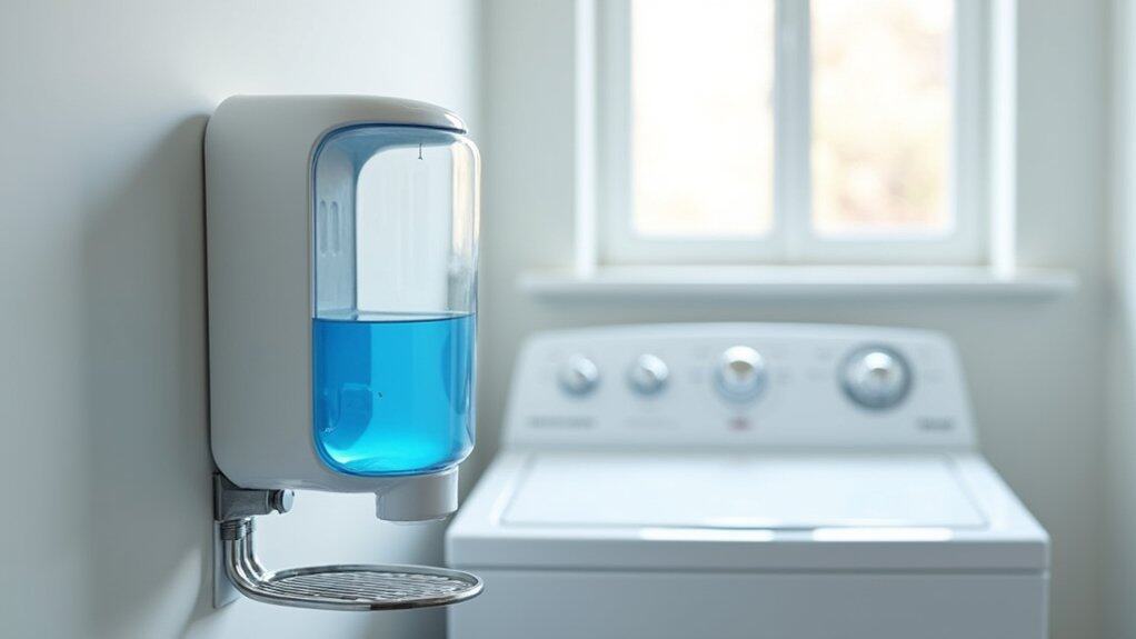When organizing with a wall-mounted dispenser, label it clearly if you use multiple types of detergent or additives to avoid mix-ups. Consider installing a small shelf or tray underneath to catch any drips or spills, keeping the area tidy. Regularly check the dispenser for clogs or residue buildup, cleaning it as needed to maintain smooth operation and prevent mess.