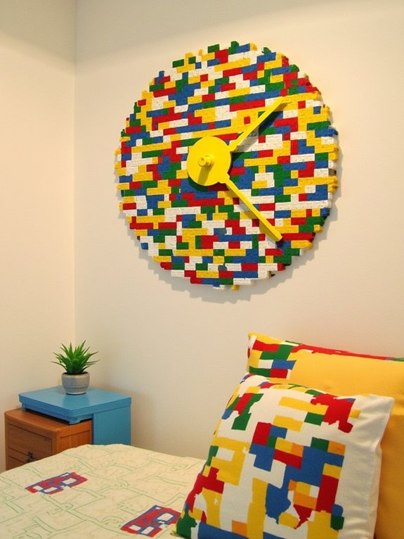 Designed to complement Lego-themed room decor, these 2-3 pound clocks mount securely to walls using sturdy brackets. The familiar stud patterns and oversized brick styling help children engage with time management while celebrating the beloved building toy’s aesthetic.