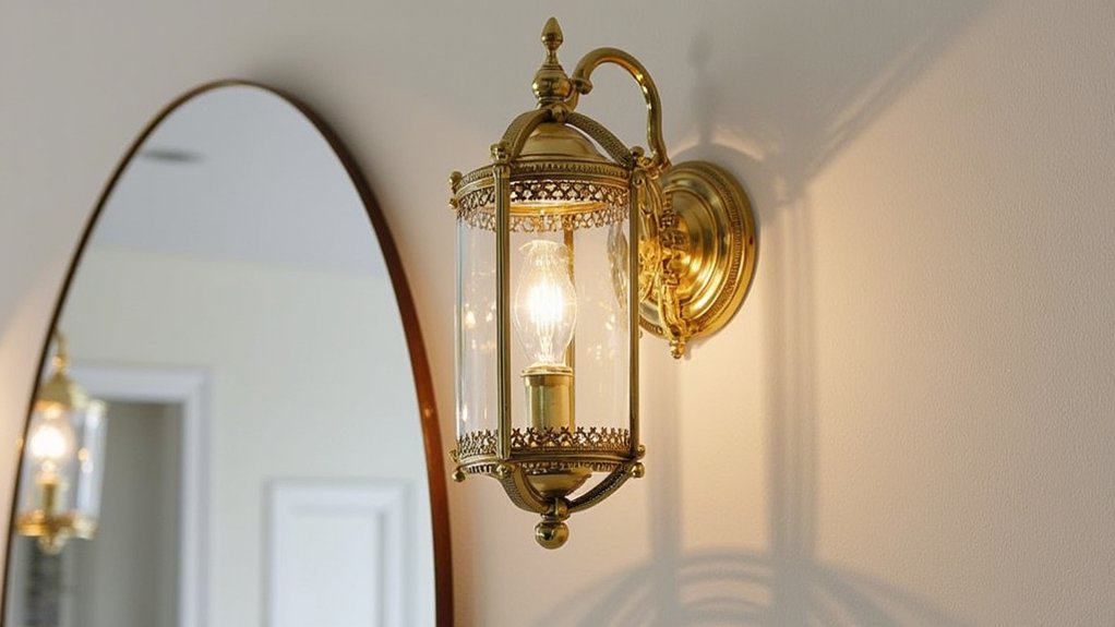 If you’re looking to add charm to your powder room, stylish wall-mounted lanterns offer a fantastic solution. These fixtures bring warmth and elegance, perfect for small spaces. Mount them at 60-66 inches from the floor for ideal lighting.