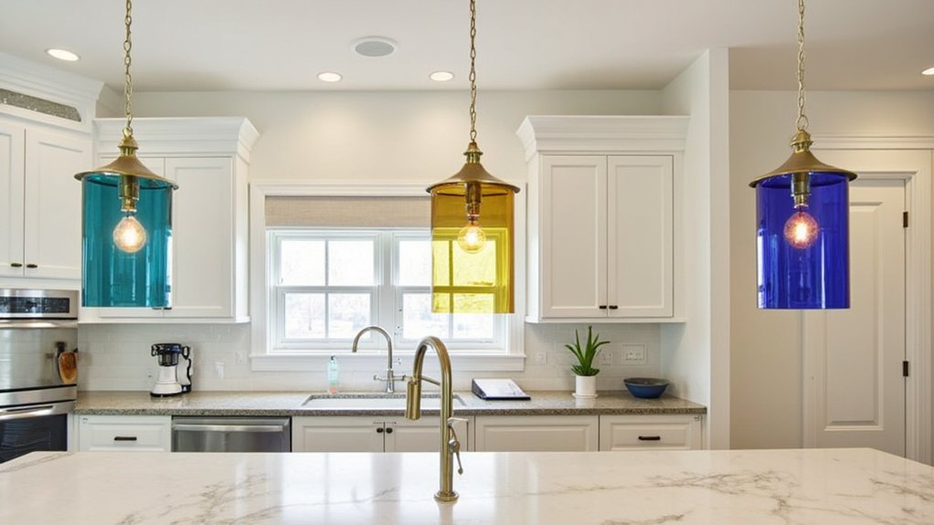 How can you add a pop of personality to your kitchen while keeping it functional? Colorful glass lanterns offer a stylish solution. Hang these vibrant fixtures above your island or dining nook for a warm glow. “Choose lanterns with a 10-12 inch diameter for balanced light,” advises lighting designer Mia Torres.